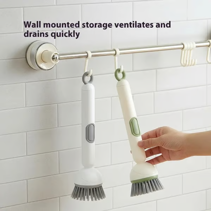 Revolutionize your kitchen cleaning with this 6-in-1 rotatable brush, featuring 360° scrubbing, an adjustable handle, a built-in detergent dispenser, and durable bristles to tackle everything from tough oil stains to delicate cookware with ease.