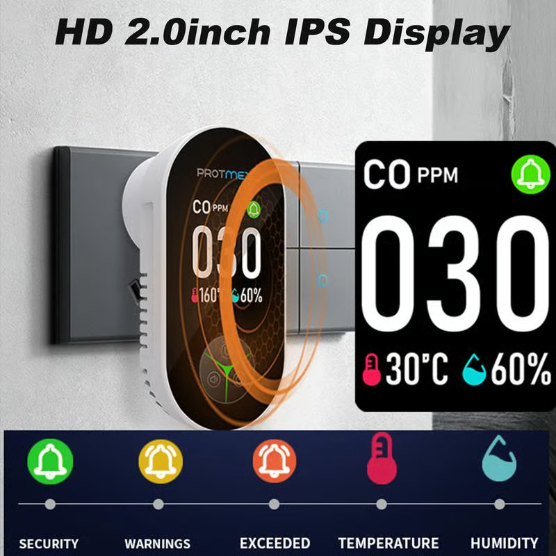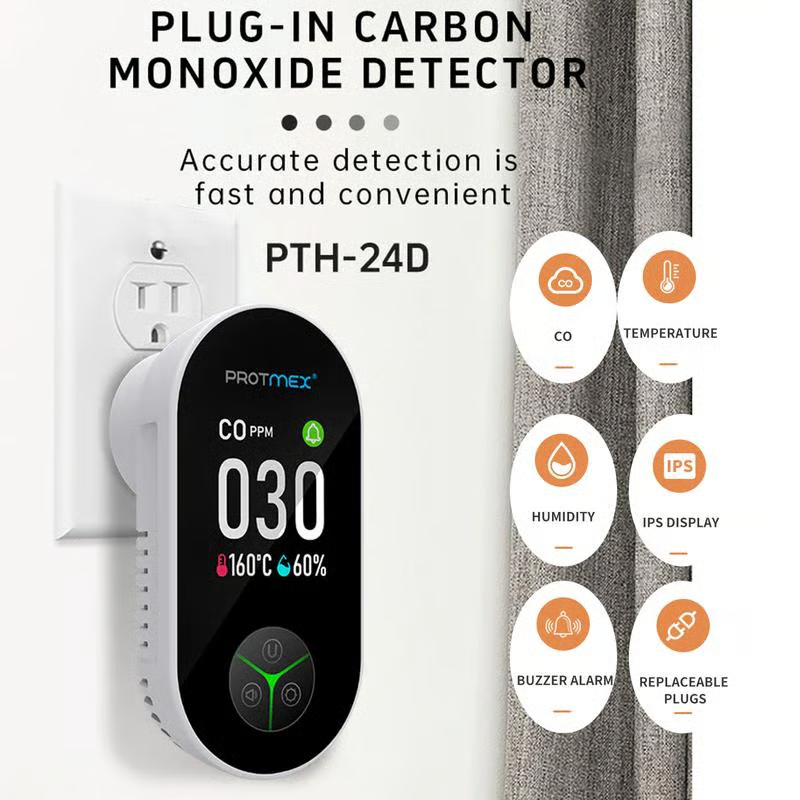 keep your friends and family safe with our battery-free CO detector, which gives clear readings of temperature, humidity and CO levels, and sounds a loud alarm when toxic levels of carbon monoxide are detected, ensuring you're awake and informed.