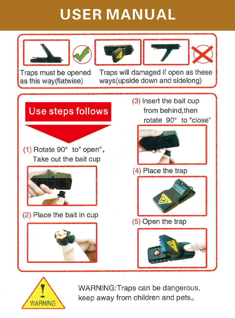 The snap trap with high sensitivity can quickly respond to rat lured into the catcher.
