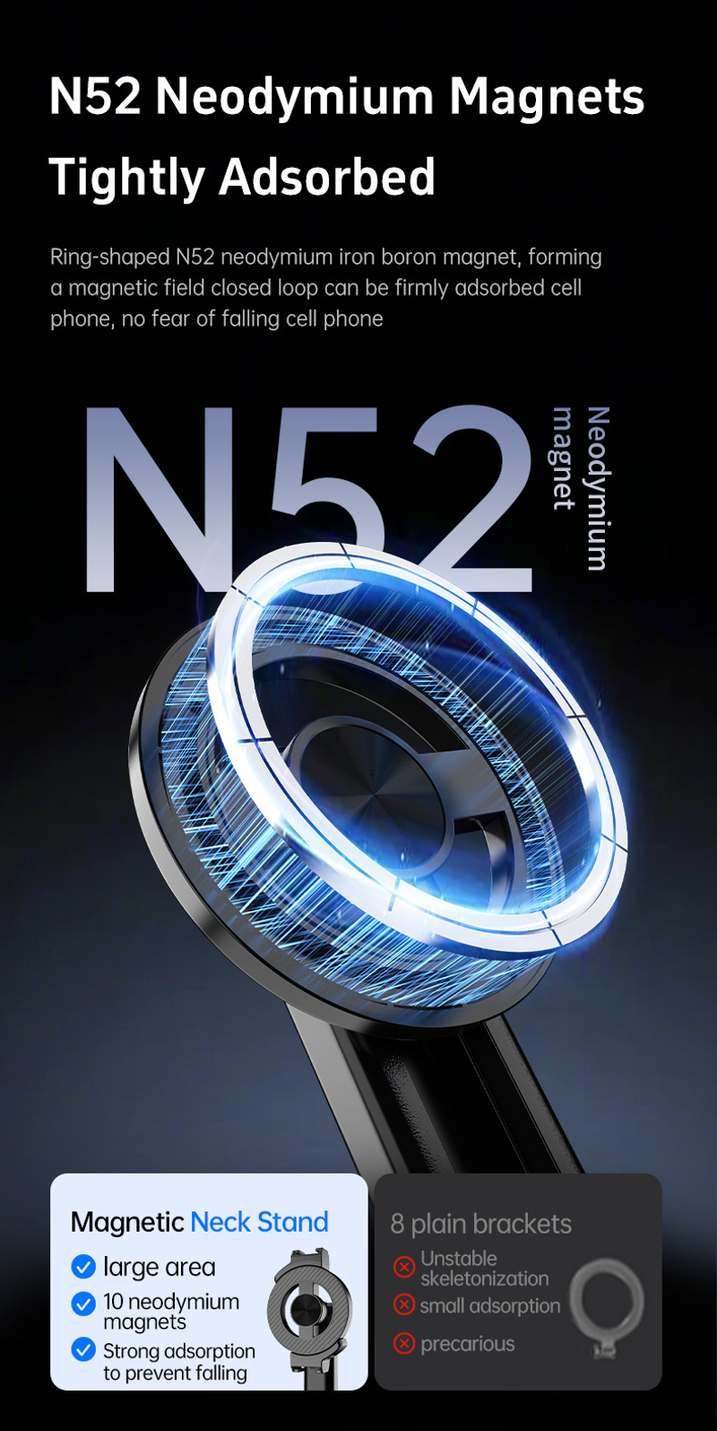 【Dual Magnetic Suction & Instant Adsorption】Featuring powerful dual-sided magnetic suction, the allows simultaneous use of your phone and other magnetic accessories securely and without slippage. Simply bring your phone near the magnetic part to adsorb it instantly. For cases that reduce magnetic force, use the included magnetic ring for better compatibility