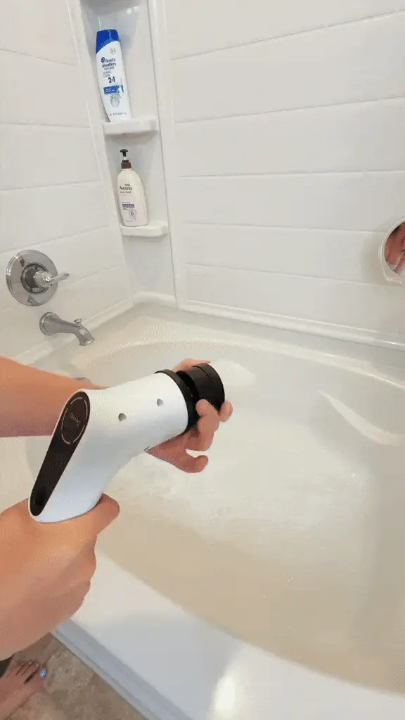 Stop bending over. The extendable handle reaches high corners and low tubs while you stand comfortably.