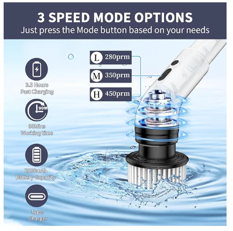 Engineered for heavy-duty residential cleaning. The high-torque motor attacks soap scum, hard water stains, and grime without stalling—saving you hours of scrubbing.