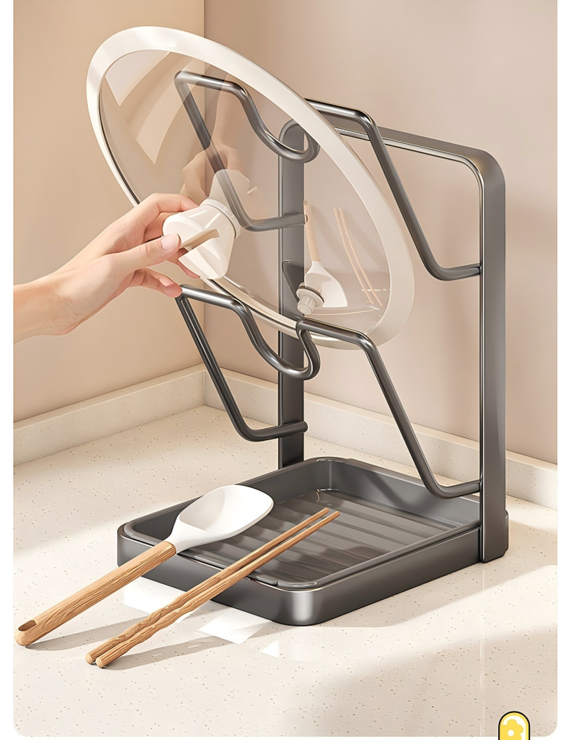 Unique design - while the ABS drainage tray collects condensation. Holds cast iron, glass, or stainless-steel lids without sagging or staining.