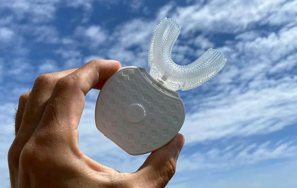 The answer: A U-shaped mouthpiece with ultrasonic technology that does the work for you.